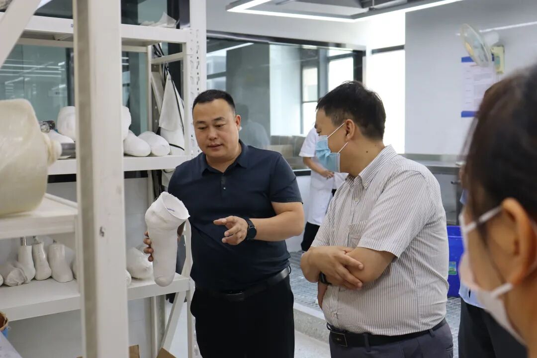 赵书记一行在参观假肢生产车间的过程中提出假肢制作过程和患者使用感受等相关问题。朱慧杰副总经理对此一一进行解答,并表示以治疗效果为先、以患者服务体验为先,是我们一直以来的行为准则。不为做而做,用真正的治疗技术,给患者带去好的效果,才能体现我们的存在价值,体现我们治疗的意义!