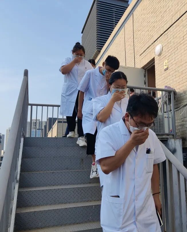 讲解完毕后,全体人员通过消防步梯有序进行逃生演练。